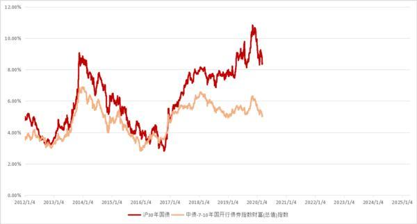 从历史数据来看,若持有5年,则沪30年国债带来的平均年化收益达6.11%,而7-10年国开债指数的持有相同时间的收益为所获得的4.81%。因此,相比于传统10年的长债,历史数据显示30年国债具有更高的收益(风险)。若在牛市初期买入,则有望获得更高的收益。如2014年至2016年债券牛市,在2014年初买入能获得12%以上的未来3年的年化收益率。(历史表现不预示未来)
