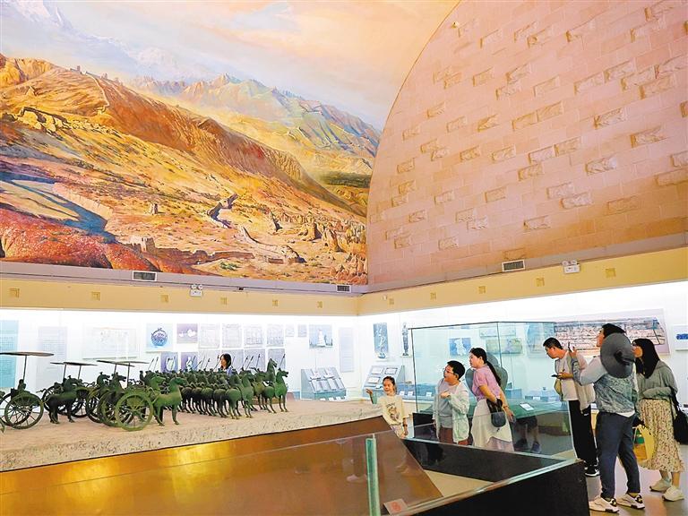7月27日,游客在甘肃嘉峪关长城博物馆参观。当地着力打造长城文化重要标志地,长城文物遗产保护和长城文化价值挖掘成效显著。